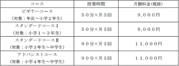 3開設コース:スタンダードコースII(対象:小学3年生~中学生)