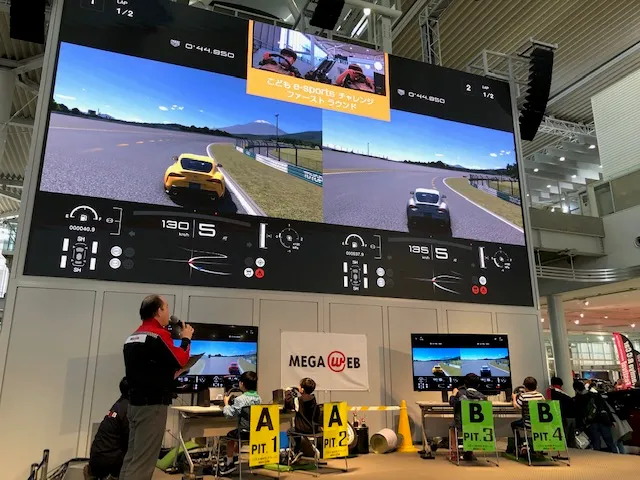 メガステージの大型ビジョンを使って、グランツーリスモSPORTのレースを行います。