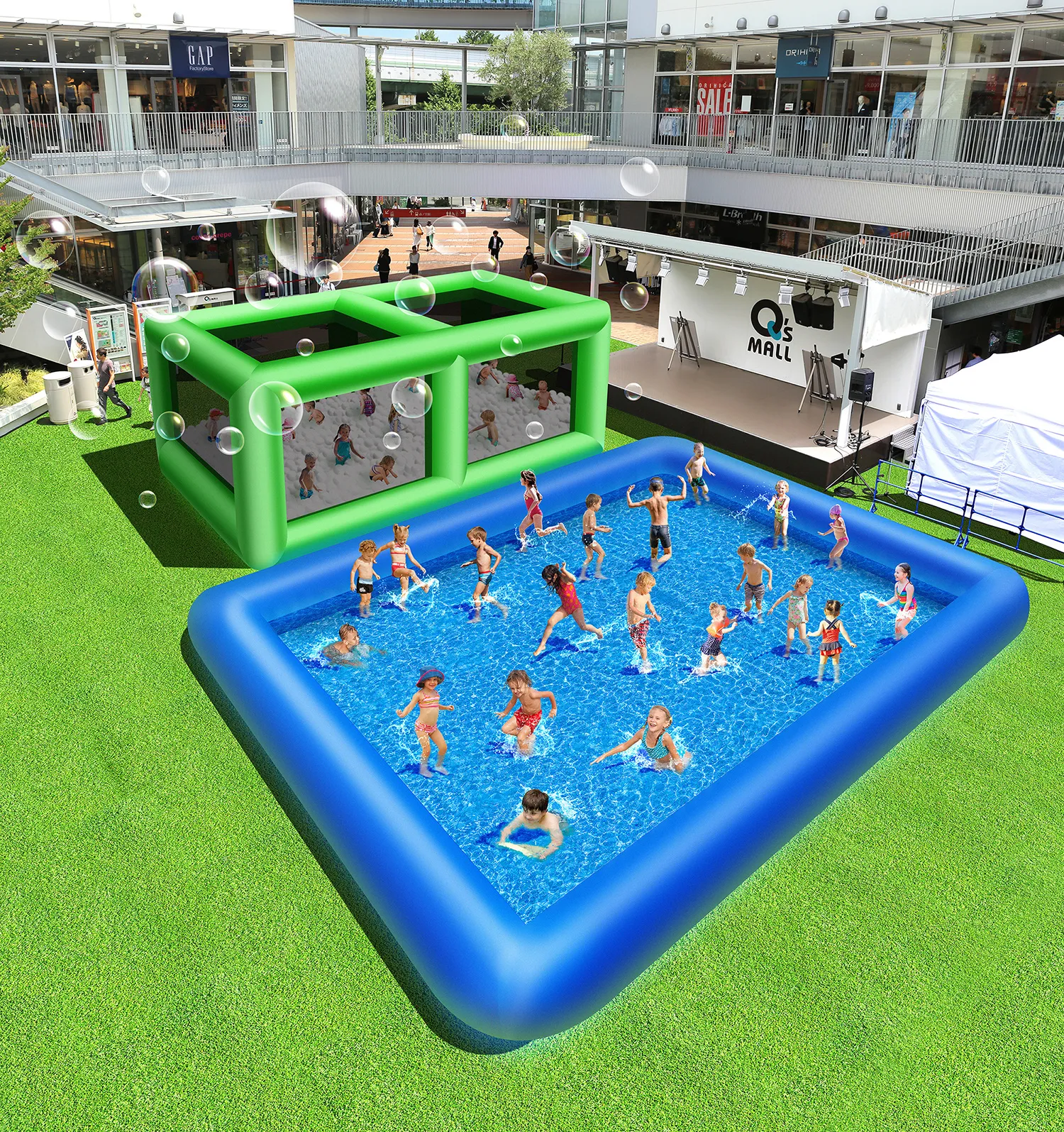 バブルプールが併設された “キューズビーチ”で暑い夏をふっとばせ!