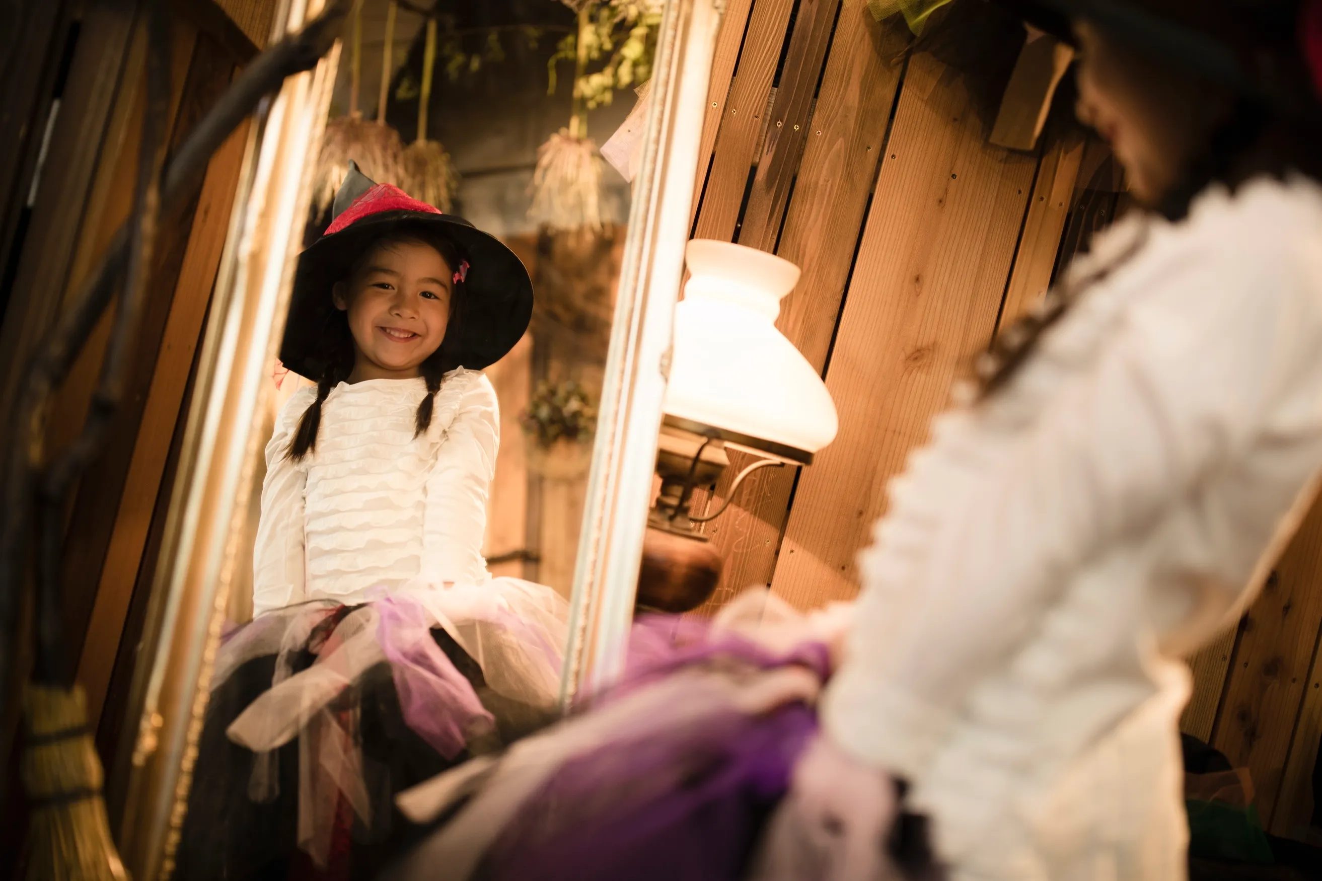 衣装レンタルルーム「魔女のクローゼット」に、大きさや形が選べる魔女の帽子や、カラフルなスカート、ローブなどを用意しています。ベビー用から大人用まであるので、家族揃って仮装できます。さらに、「魔女のスタンプラリー」や「ハロウィンライトアップ」など、魔女の世界に浸ることのできる体験もおすすめです。