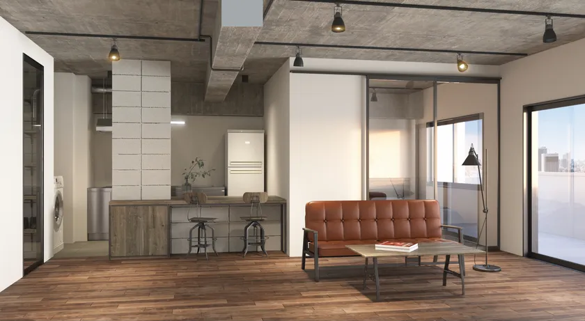 目黒ショールームは、既存の躯体やブロックの素材感を生かしながら古材やアイアンの造作などを用いてトレンドであるインダストリアルなデザインテイストにまとめたショールームです。間取りは、既存3LDKから1LDK+フリースペースとしても使えるフレキシブルな2LDKを採用しました。家事動線もまとまっており、デザインと暮らしやすさが両立しています。また土間を大きく取ることでお部屋に入ったときの開放感が感じられます。インダストリアルな雰囲気でこだわり抜いた照明や家具の空間をご体感ください。