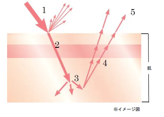 内部に侵入した光が散乱し、再び外に解き放たれるとき、肌の輝きが生まれます。