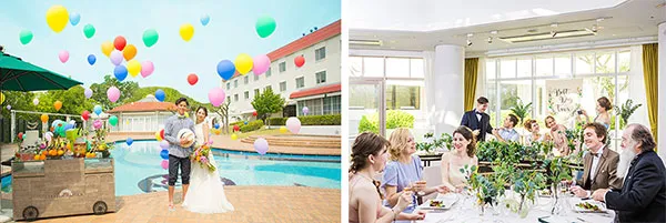 リゾート感溢れるプールサイドで、バルーン演出やデザートビュッフェなどの演出を組み込むことも可能。