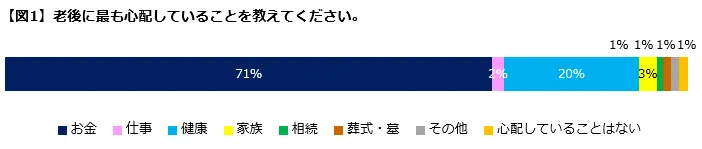 1:老後の心配、第1位は「お金」。対策をしている方は3割に留まる。(図1、図2)