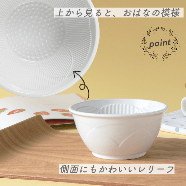 側面にもかわいいレリーフが施されており、食器棚におさめたときのかわいいデザインにもキュン。