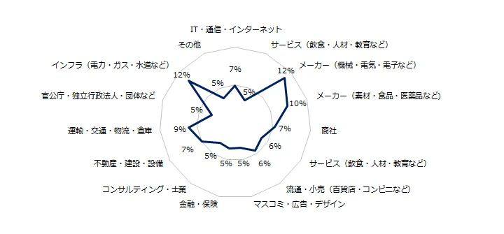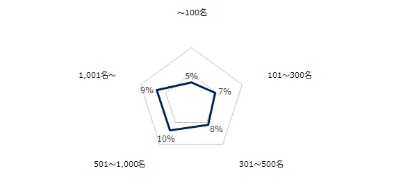 今年ベースアップで月給が上がった方が在籍する企業を業種・規模別に見ると、ベースアップの実施率が高い業種トップ3は「メーカー(機械・電気・電子など)」(12%)、「インフラ(電力・ガス・水道など)」(12%)、「メーカー(素材・食品・医薬品など)」(10%)でした。企業規模では「501~1,000名」(10%)が最多でした。