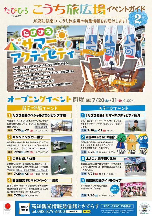 こうち旅広場は、7月20日(土)~21日(日)のオープニングイベントを皮切りに、アクティブK介の謎解きめぐりや「たびひろ塾夏休みスペシャル」などいろいろな体験ができる「たびひろサマーアクティビティ」イベントを開催いたします。