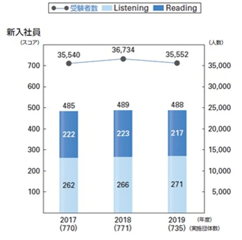 TOEIC(R) Listening & Reading団体特別受験制度 2019年度新入社員の平均スコアは488点