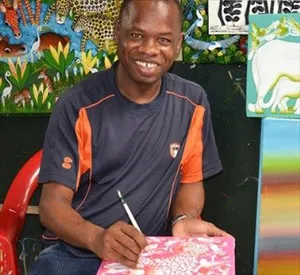 1996年から、ティンガティンガ村にて絵の修行をしながら学校に通った。