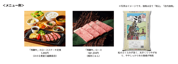 フェアでは、各店舗で「飛騨牛」を使用した特別メニューを提供するほか、期間中メニューのご飯すべてを令和7年産の新米「飛騨コシヒカリ」で提供します。