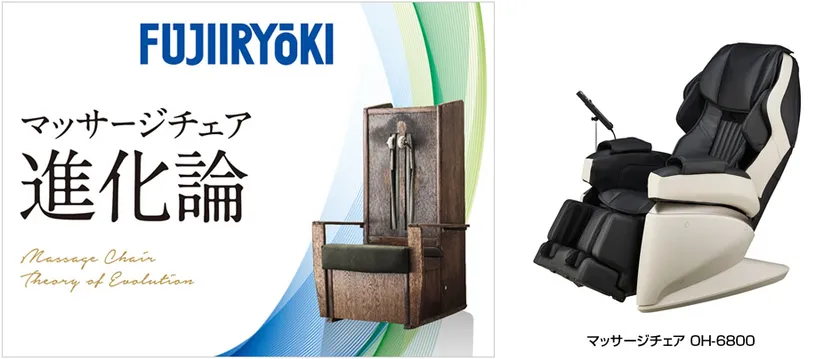 また、「マッサージチェア進化論」をテーマとして、マッサージチェアの技術の進化および未来像を日本語と英語のパネルで解説しています。