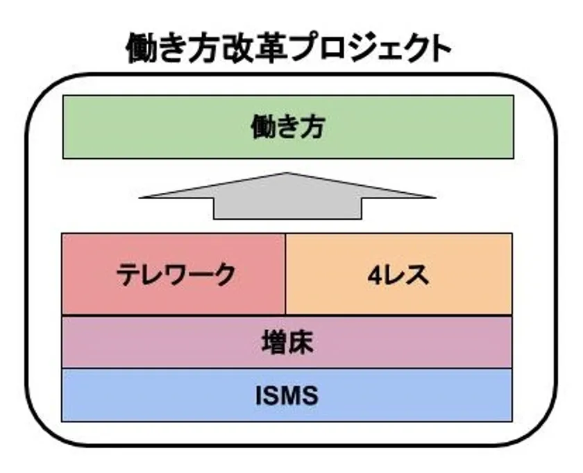 ISMSの構築により、ロケーションフリーな働き方においても適切な情報管理が為されることを期待できるため、いわば本プロジェクトの基盤となる取り組みであります。