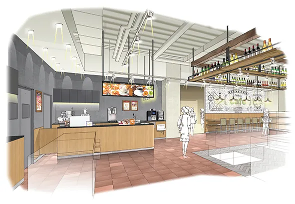 昼間のオフィスワーカーのランチ需要にお応えしたり、周辺住民の方々も含めてお仕事後などにちょっと一息付ける集いの場としてもご活用いただけることを目指しています。