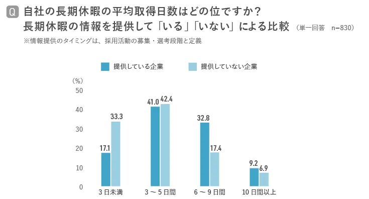 8割の企業が中途採用で長期休暇に関する情報を提供、取得実績など実態開示の有無で採用充足に大きな開き【企業の人事担当者アンケート調査】