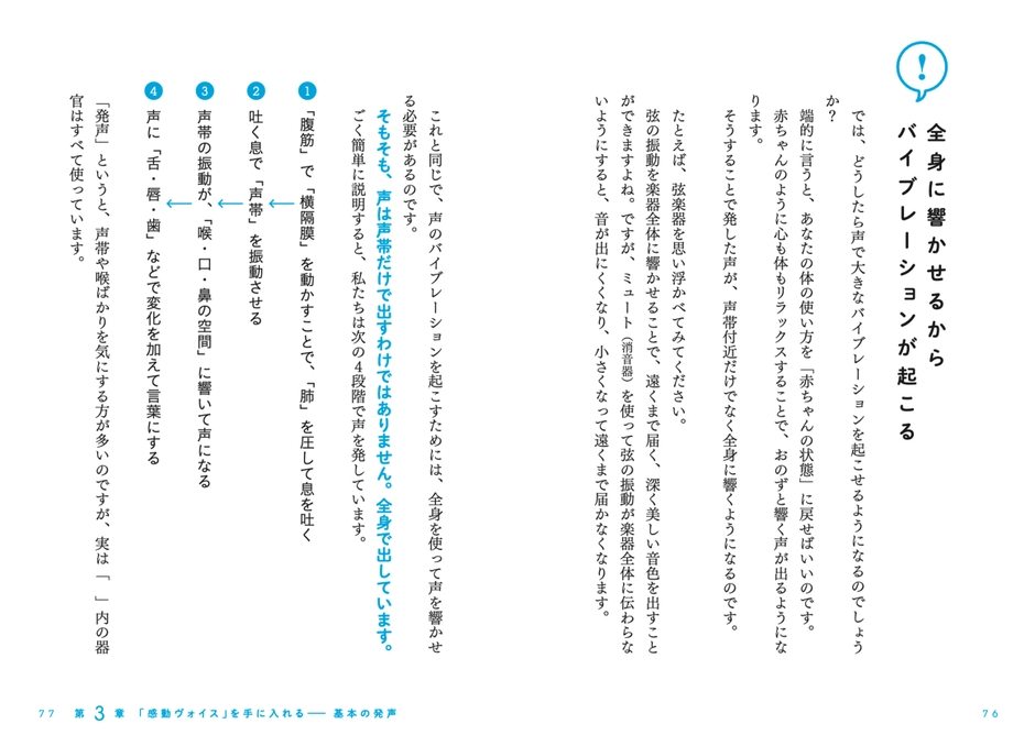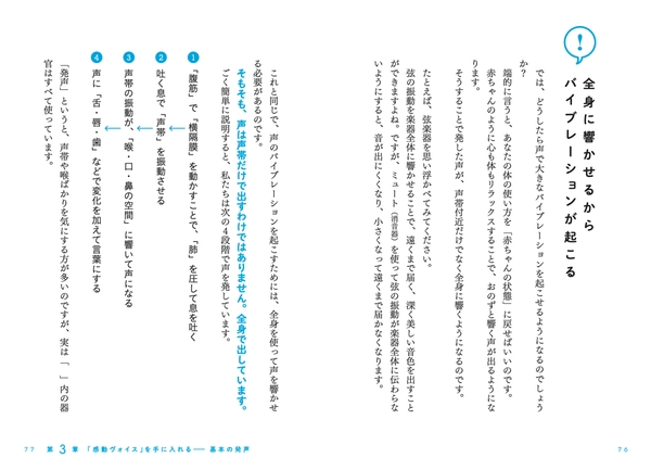 第3章からは、いよいよ実践となる感動ヴォイスの基本的な発声法をお伝えします。