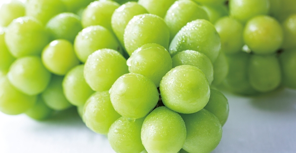 シャインマスカットは糖度が高く酸味が控えめなので上品な甘さと芳醇な香りが楽しめ、しっかりとした食感の果肉は果汁がたっぷり含まれており食べるとジュワっとあふれだします。また、種がなく皮が薄いことから、そのまま食べられるのが大きな特徴です。このシャインマスカットならではの芳醇な香りが、なめらかな口当たりの白あんと、シャインマスカット大福に合わせて仕上げた、やわらかな餅生地と合わさることで、至福の味わいになります。