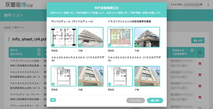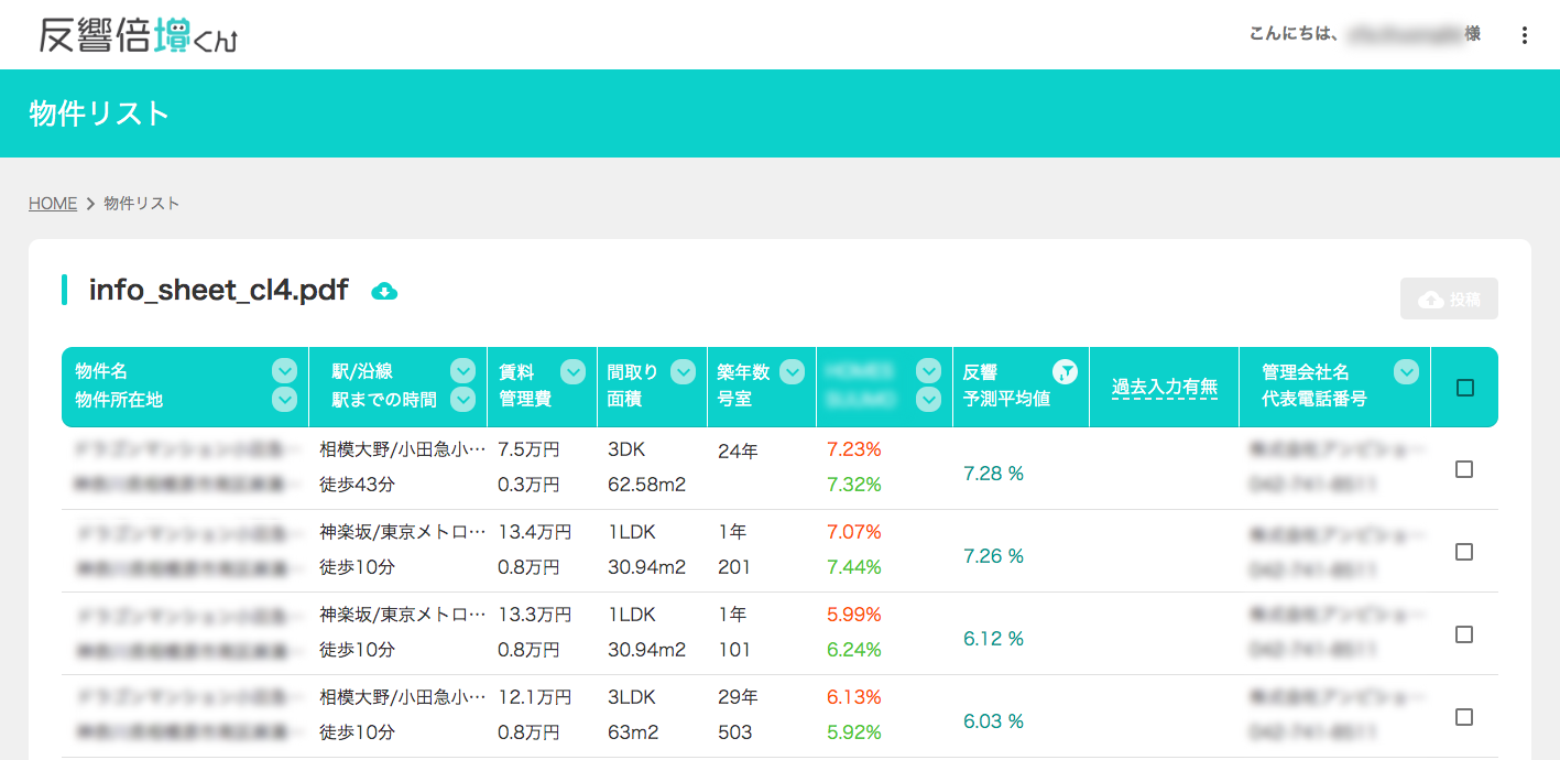 「反響倍増くん」は、物件情報をWEBにアップロードするだけで、反響が得られる確率の高い物件をAIが選定し取得することが出来るため、ベテランスタッフではなくとも掲載する物件の選定が可能となります。