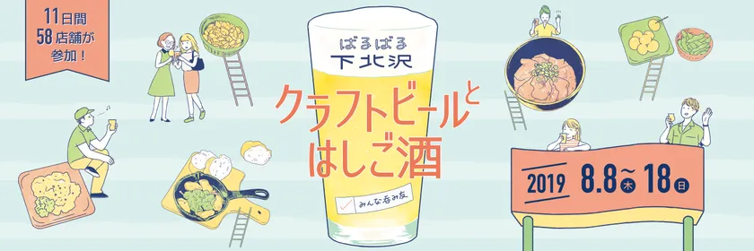 夏はクラフトビールで乾杯!お盆休みはみんなで はしご酒! 下北沢の58の飲食店が参加する 「ばるばる下北沢 クラフトビールとはしご酒 みんな呑み友」 期間:2019年8月8日(木)~8月18日(日)