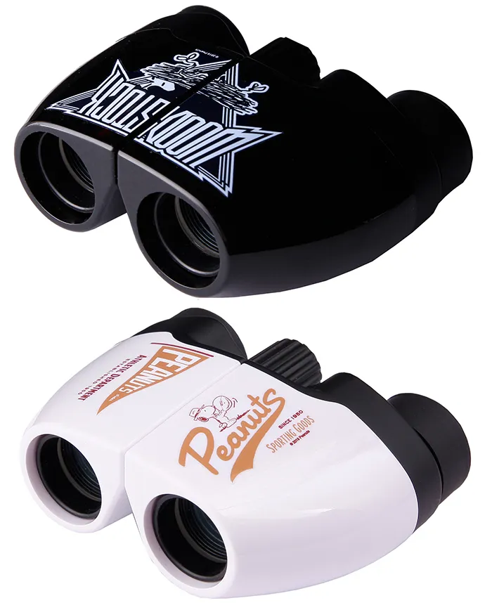 ROCKTEES Woodstockはロックテイストでクールなデザイン。SPORTS Snoopyはフラッグモチーフを基調としたスポーティに使えるデザインです。倍率は初心者にも扱いやすい8倍で、幅広い用途に活用いただけます。