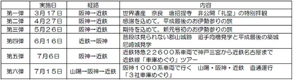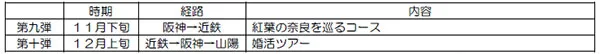 阪神電気鉄道株式会社(以下「阪神」)と近畿日本鉄道株式会社(以下「近鉄」)、株式会社阪神ステーションネット(以下「阪神ステーションネット」)は、2019年が阪神なんば線の開業及び阪神・近鉄の相互直通運転開始から10周年であることから、年間で10本の記念旅行商品を実施、計画していますが、この度、第七弾・第八弾の商品の発売が決まりましたのでお知らせします。