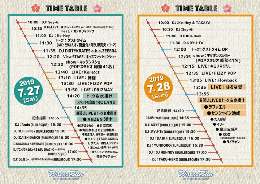 7月27日(土)・28日(日)いよいよ開催! 大注目の『Water Run Festival 2019』 総勢50組以上の豪華出演者。 当日のタイムテーブルを公開!