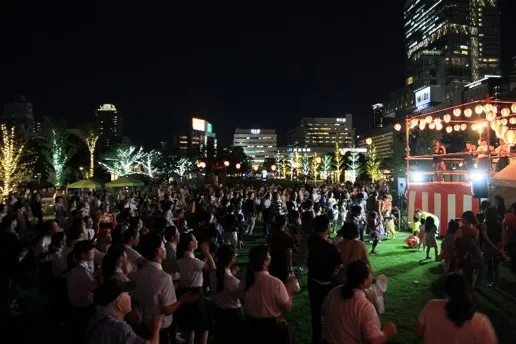 また、天王寺・あべのエリアのにぎわい創出を目的とし、本年で3回目の開催となる「てんしば盆踊り2019」では、芝生広場の中央にやぐらを組み、地元の民謡団体「民謡はなもも天王寺」の皆様のご協力のもと、地元や大阪市内にお住まいの方々を中心とした盆踊りを実施いたします。
