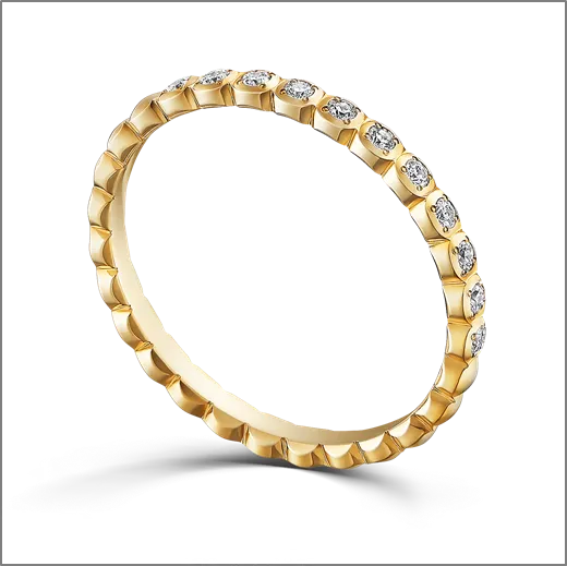 上面にはメレダイヤモンドを11pcsセッティングし、メレダイヤモンドが丸く見えるように極小の4つの爪で留めるなど細部までこだわっています。