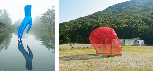 出展アーティストによる作品例(左から 久保寛子『やさしい手』 2018、久保寛子『土頭』 2016)