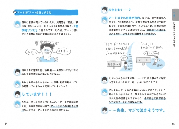 本書では、「そもそも、アートって何?」「アートって人生の役に立つの?」といった「ふつうのビジネスパーソン」が抱く素朴な疑問を「アートの哲人」にぶつけ、「アートの謎」を明らかにしていきます。