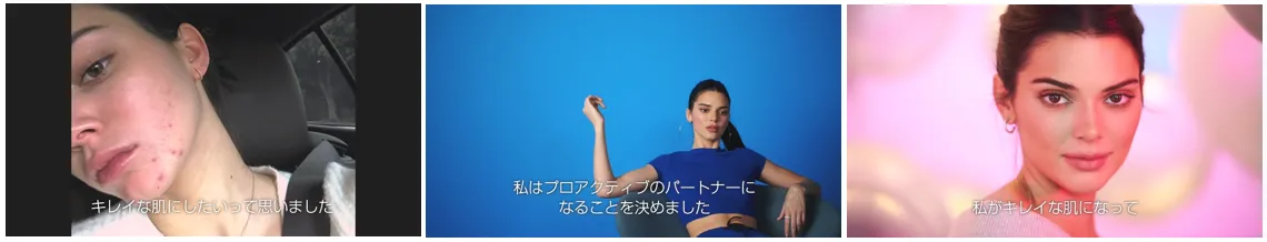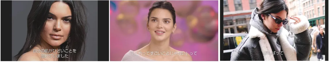 ケンダル・ジェンナー「昨年大きな授賞式に出て、レッドカーペットは初めてだったので、すごく嬉しくて、とても誇らしかったです。ドレスもヘアもメイクアップも完璧その興奮は夜までずっと続きました。でもその後、SNSを見たら、私の肌についてひどく書かれていたんです。素晴らしい1日だったので、自分の肌がひどいことを忘れていました。でもいくつかのツイートで私を励ましてくれていて、それがやがてたくさんの数になって。みんなの優しいメッセージを見て、“これってすごいことじゃない”って気持ちを切り替えました。がんばってキレイな肌にしたいって思いました。もしあなたもニキビがあって、良くならないとあきらめていても、必ず解決方法があるし、必ず終わりがあります。私にとって、その魔法はプロアクティブでした。大きなことでしたが、わたしはプロアクティブのパートナーになることを決めました。わたしがキレイな肌になって、どうやってその肌になれたのか伝えることで、みんなもキレイな肌になってもらえるから。プロアクティブはあなたを笑顔にする素敵な魔法です。それは人生を変える。みんなの人生を素敵にしたい。だから、私はここにいます。」