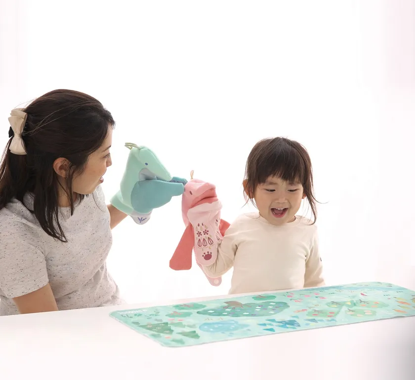 パペット+タオルでぬいぐるみにもなる知育玩具が登場! ミニえほん付きで読み聞かせやなりきり遊びができる