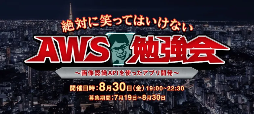 本勉強会では、AWSの高精度の画像・動画分析サービスである「Amazon Rekognition API」を使い、某番組で有名な、笑うと「○○~OUT!!」と判定音を流すアプリを開発します。