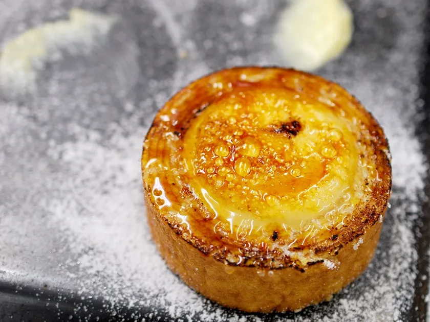 2019年春に開催されたバウムクーヘン博覧会で、連日完売したアニバウムの大人気商品「Cake BAUM クレームブリュレ」は、手のひらサイズに焼き上げたふわふわバウムクーヘン生地に、とろーり濃厚なカスタードクリームをつめて、表面をパリッと香ばしくキャラメリゼして仕上げました。