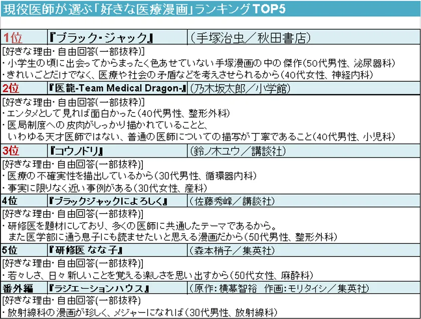 ▲現役医師が選ぶ「好きな医療漫画」ランキングTOP5