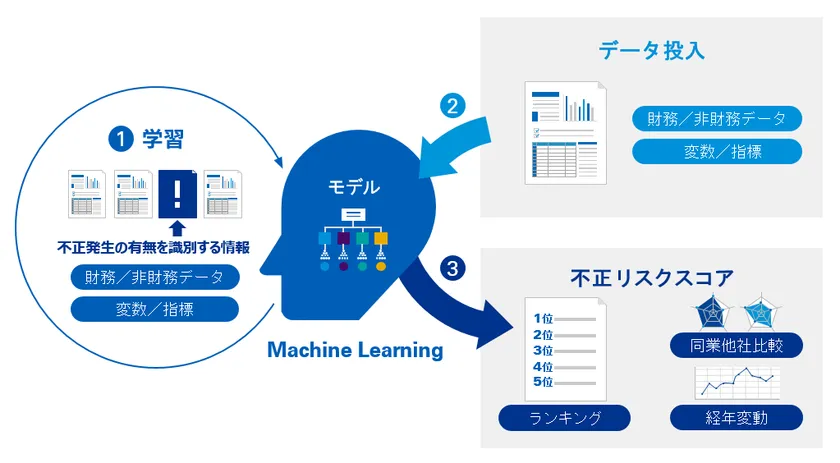 本モデルを使用することで、現時点の財務諸表における不正発生リスクのスコアリングに加えて、どのような要素が不正発生リスクに影響しているかを分析し、将来における不正発生予測も可能となります。