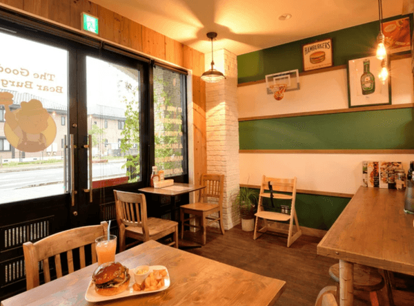 『The Good Bear Burger』は、ナチュラルな木のぬくもりでゆったり過ごしやすい内装となっています。