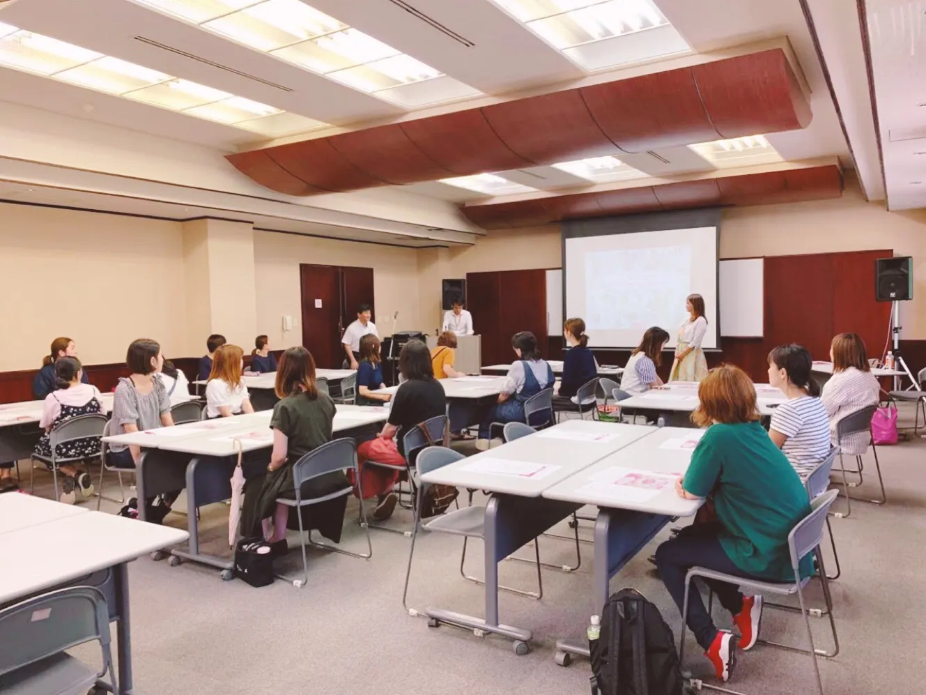 調印式後に開催されたセミナーでは、マミーゴー代表の荻野が、働くことを希望する女性たちに対して、時短術など仕事と家庭を両立させるためのスケジューリング方法や、具体的なお仕事についてどういったものがあるかをご案内しました。