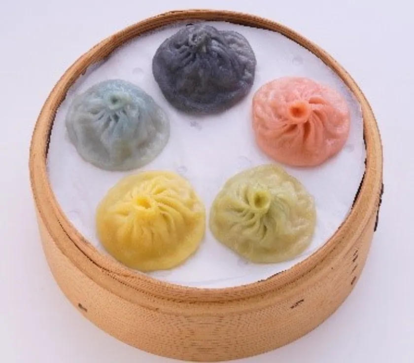 【5色小籠包(5色一組)】青 ホタテ、黒 椎茸、赤 麻辣、黄 エビ、緑 蟹(24g×5色)