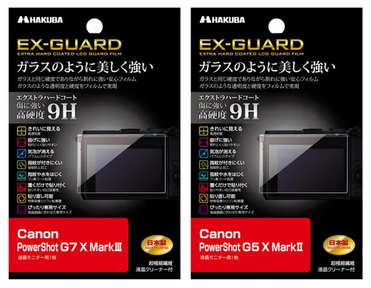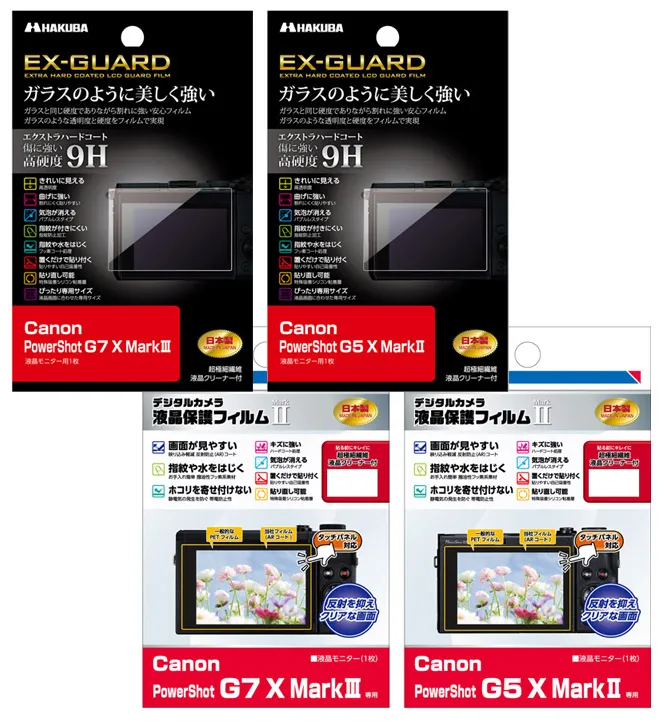 ハクバ写真産業株式会社 (本社:東京都墨田区)は、Canon PowerShot G7 X MarkIIIとPowerShot G5 X MarkII専用液晶保護フィルムに、ガラスのように美しく強い「EX-GUARD」タイプと「MarkII」タイプの4製品を発売いたします。