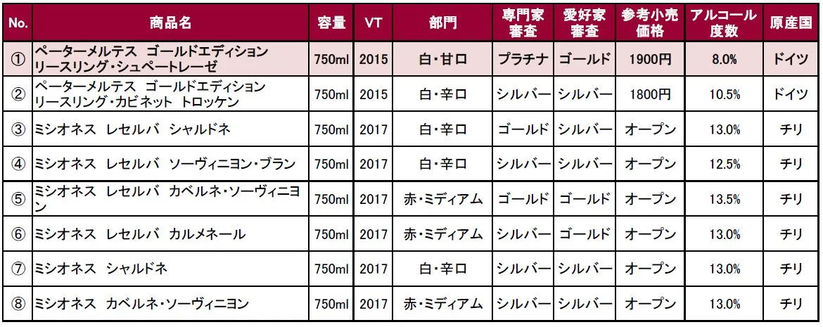 “日本で飲もう最高のワイン2019”受賞商品