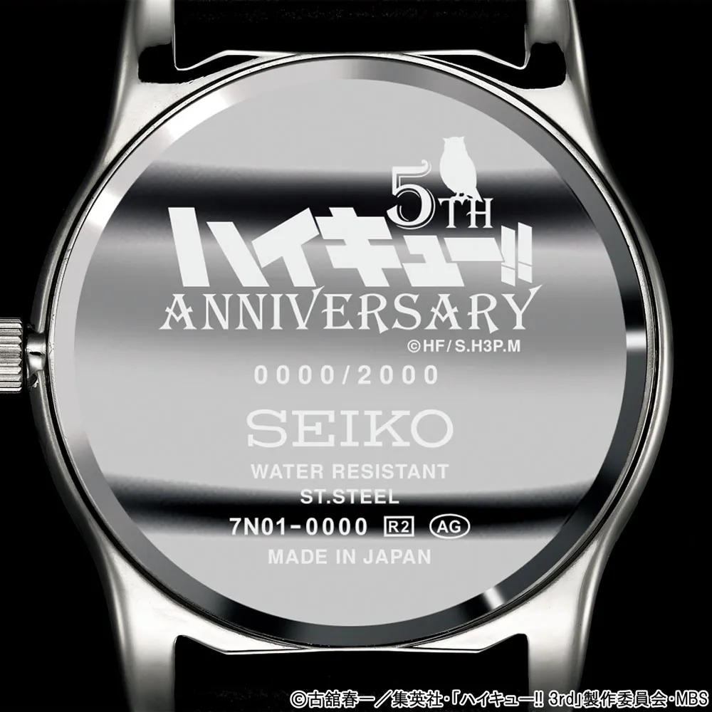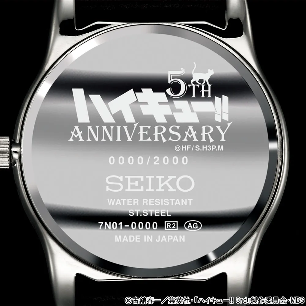 裏蓋には、ハイキュー!! アニメ5周年記念のロゴと、限定2000点の証であるエディションナンバーを刻印。