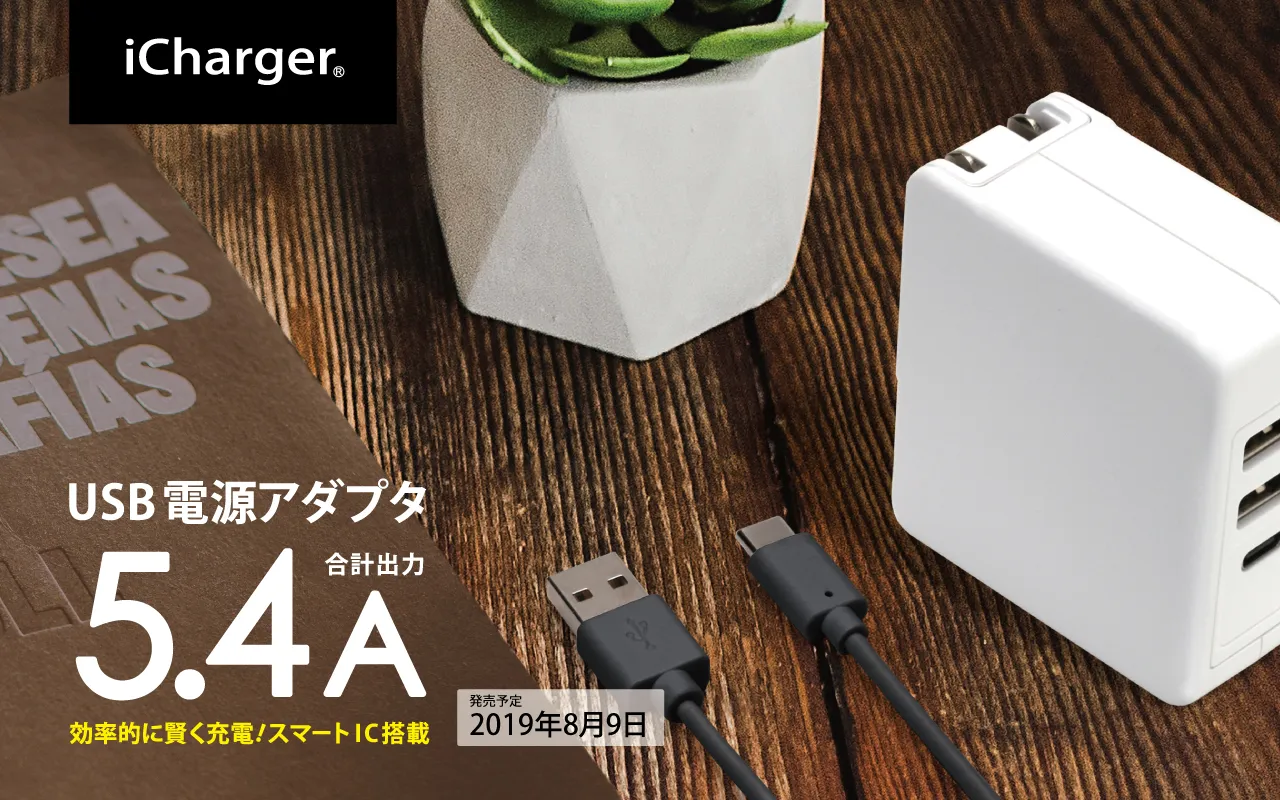 携帯電話やデジタルオーディオ端末等のアクセサリーの商品を企画・製造・販売を手掛けるスマートフォンアクセサリー国内シェアトップの株式会社PGA(本社:横浜市都筑区、代表取締役:黒木 光)は、「iChager」ブランドから「USB電源アダプタ 5.4A (USB-A×4)」シリーズ2種、「USB電源アダプタ 5.4A (USB-A×2/USB-C×1)」シリーズ2種を2019年8月9日より発売致します。全国の家電量販店・または弊社直販サイトにてお買い求め頂けます。