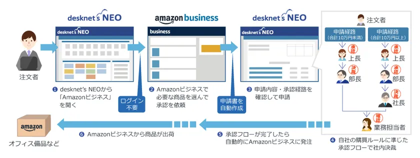 【『desknet's NEO』におけるAmazonビジネスでの購買フロー概要】