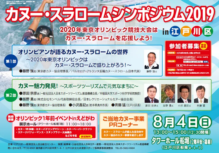 「カヌー・スラロームシンポジウム2019in江戸川区」開催 東京2020オリンピック競技大会は カヌー・スラロームを応援しよう! 8月4日(日)はタワーホール船堀へGo!
