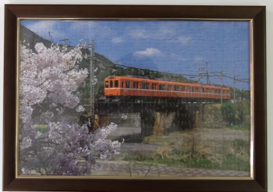 4.内容 桜咲く多度川を渡るラビットカーをデザインした300ピースのジグソーパズルです。