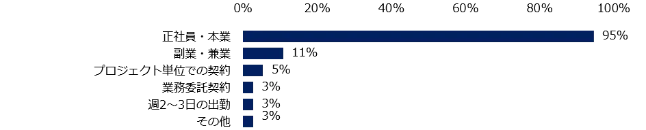 求職者が希望する働き方を伺ったところ、「正社員・本業」(95%)が最多でした。