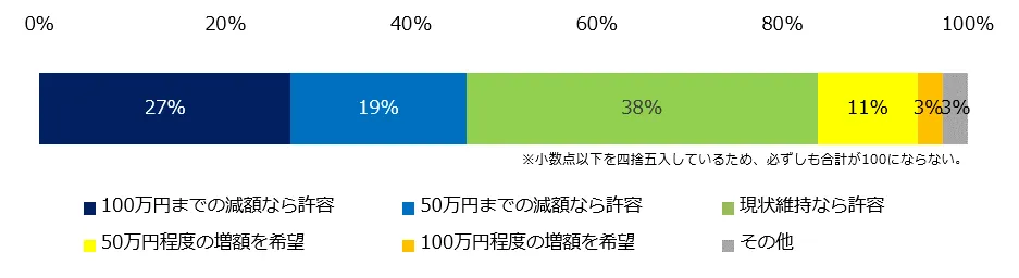 正社員希望者の傾向を伺ったところ、希望する年収の増減額は46%が「減額を許容」(100万円までの減額なら許容:27%、50万円までの減額なら許容:19%)でした。「現状維持」(38%)と回答した方も多く、年収アップを強く望む方は少ないことが分かりました。