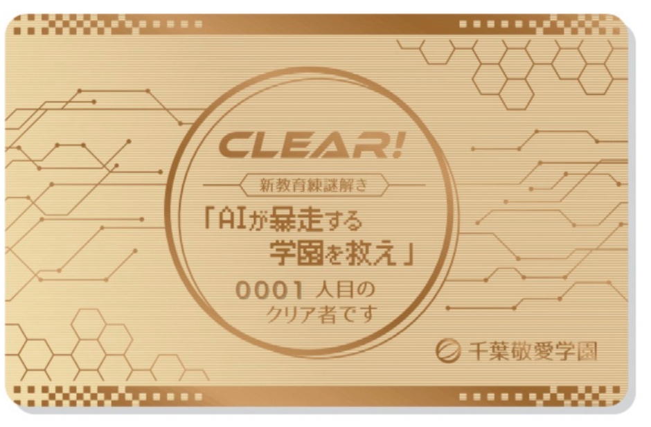 謎解きゲームをクリアした方には、先着300人限定で、イベントオリジナルデザインの「シリアルナンバー入り記念カード」をプレゼントします。自分だけのシリアルナンバーが刻まれた特別感のあるカードとなっており、今回の謎解きゲームの思い出として持ち帰ることができます。敬愛大学 新教育棟1Fにある会場受付にてクリア画面を提示いただいた方にお渡しします。