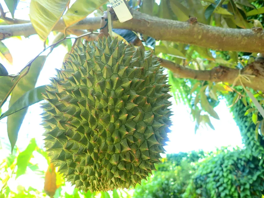 ボルネオ、マレーシア等が原産の熱帯果樹で、果実の大きさや特徴的な香り、強い甘味から「果実の王様」と称えられます。通年を通して高温多湿の環境下で生育するため、国内での栽培が非常に難しい果樹です。