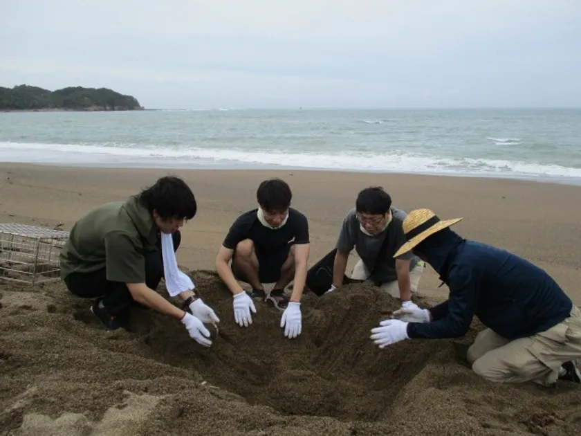 2019年7月20日(土)には、産卵されたウミガメの卵の位置を確認し、砂中に防護柵を埋設
